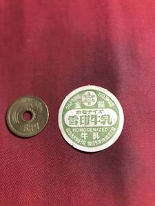 雪印牛乳木曜ホモナイズ福岡市大字五十川牛乳キャップ昭和レトロ牛乳瓶の蓋薄く剥がされていますレア