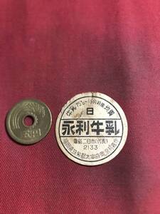 永利牛乳日福岡県筑紫郡太宰府町牛乳キャップ昭和レトロ牛乳瓶の蓋薄く剥がされていますレア