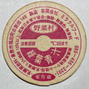 《牛乳キャップ》野菜村 緑葉青汁(未使用)岡山県 有限会社ミラクルフード 牛乳瓶/フタ/蓋 同封可