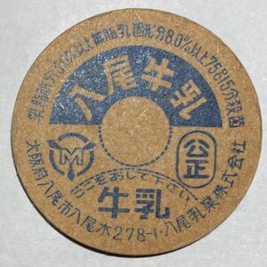《牛乳キャップ》八尾牛乳 (未使用)大阪府 八尾乳業 牛乳瓶/フタ/蓋 同封可