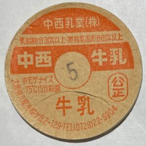 《牛乳キャップ》中西牛乳 (使用済)大阪府 中西乳業株式会社 牛乳瓶/フタ/蓋 同封可